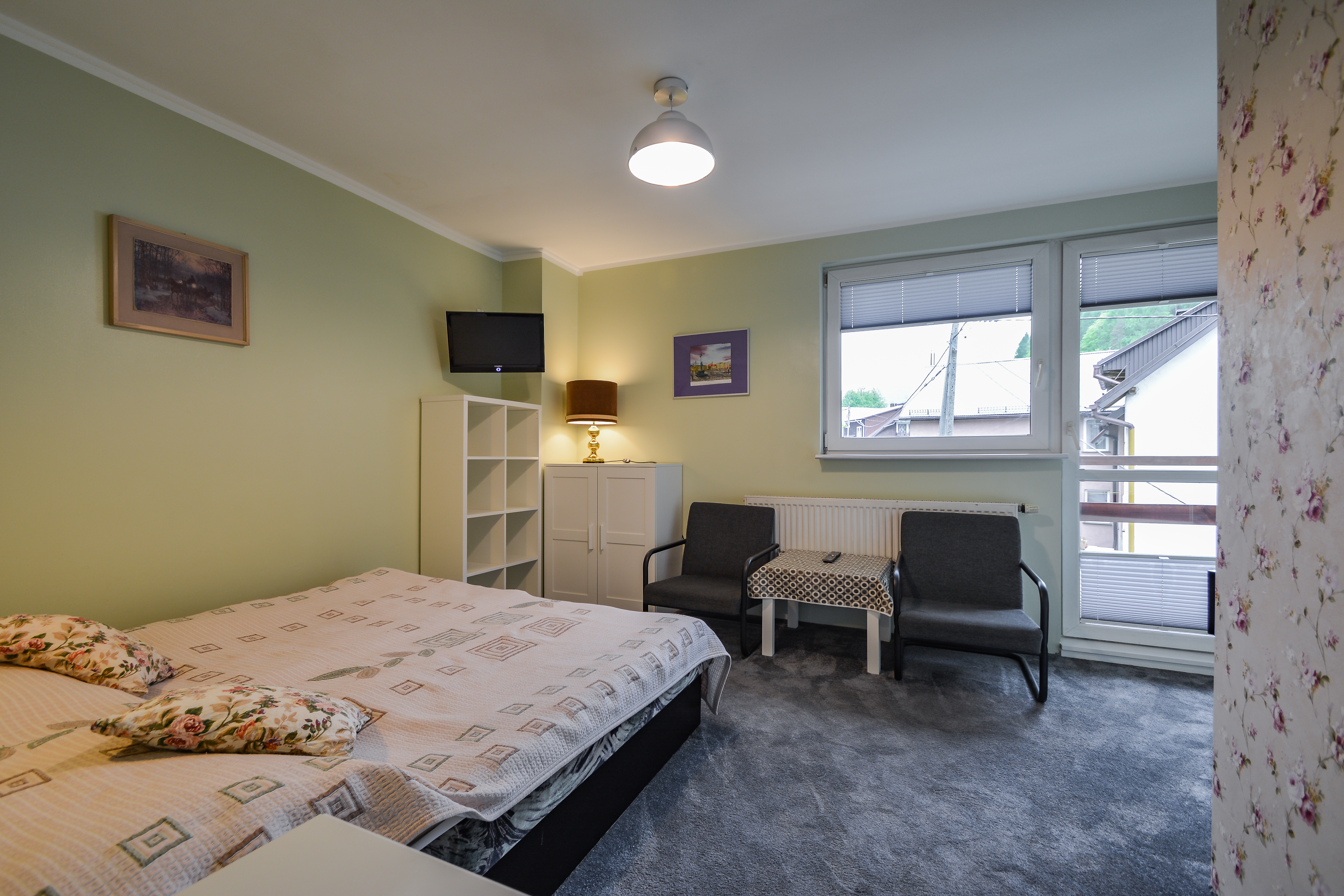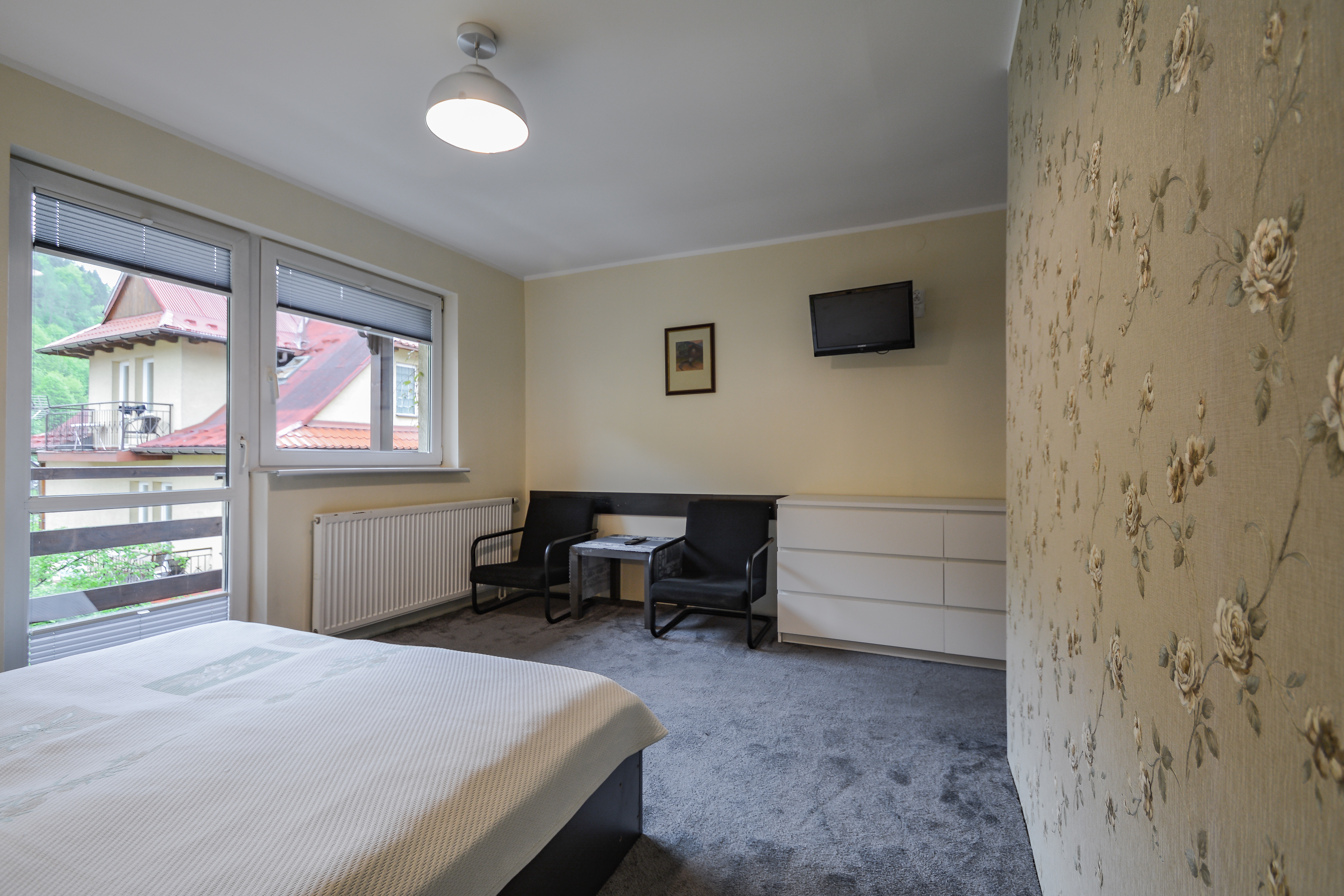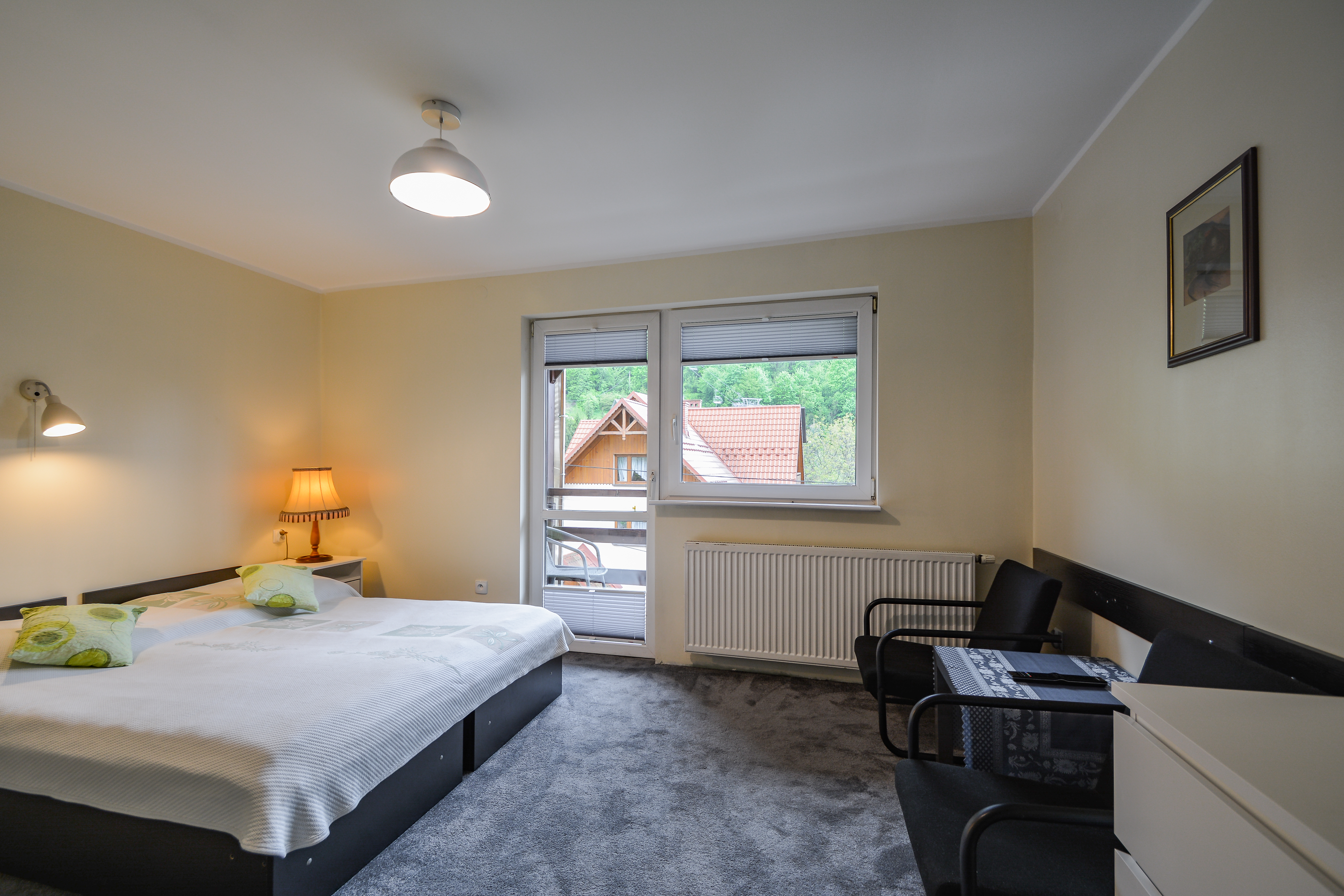 Oferujemy noclegi w pokojach 2 oraz 3-osobowych z łazienkami z prysznicem, balkonami z pięknym widokiem na Palenicę oraz Promenadę Spacerową. Oferujemy 8 pokoi (6 dwuosobowych, oraz 2 trzyosobowe - z czego 1 pokój trzyosobowy ma możliwość rozkładanej dostawki). Pokoje i łazienki są przestrzenne pozwalając na komfort wypoczynku. Pokoje wyposażone są w pościele, TV oraz lampki nocne.