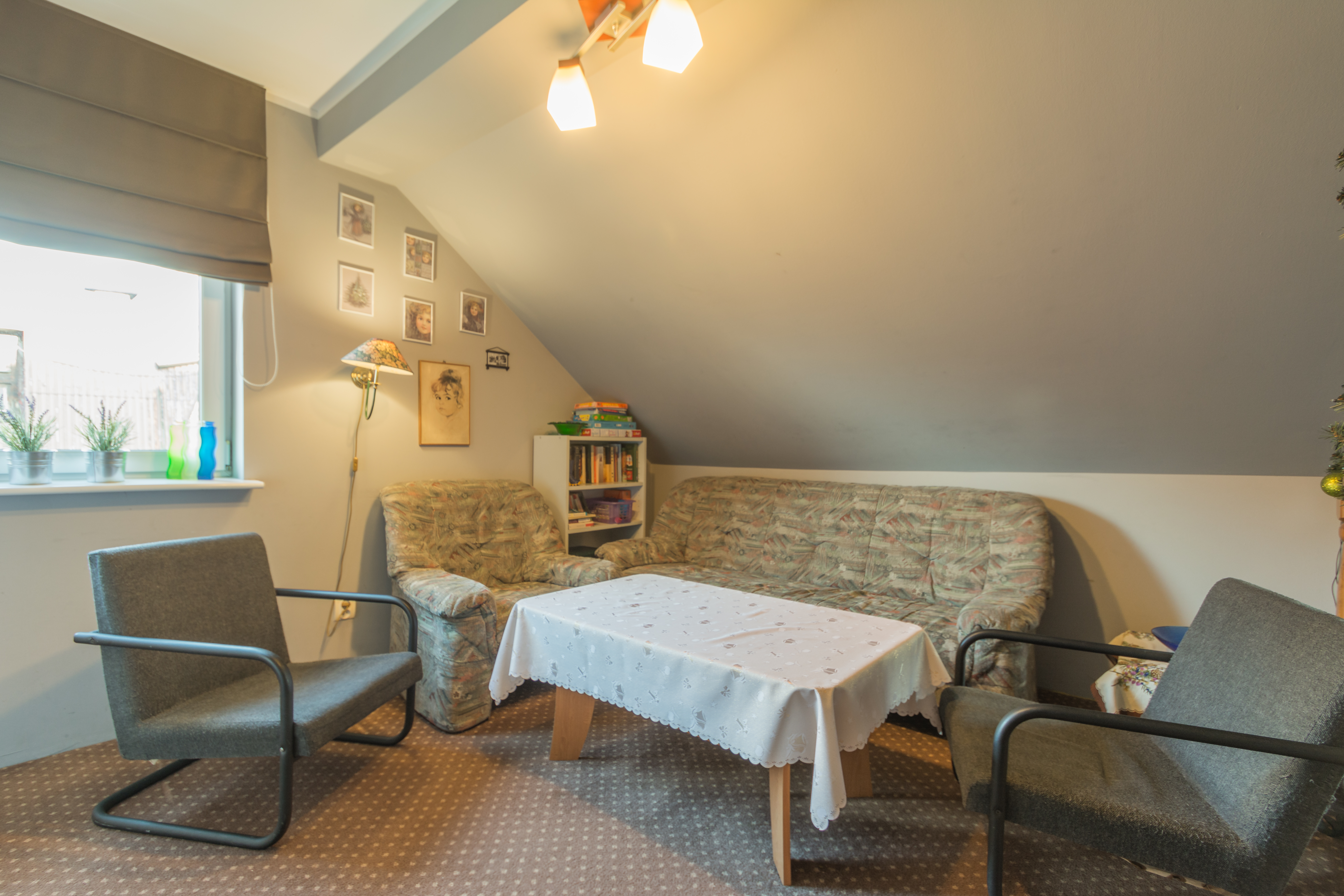 Poza przytulnymi pokojami oferujemy Państwu miejsca do wypoczynku. W budynku, na każdym piętrze są ogólnie dostępne „salony” z kanapą, stołem i fotelem. Do dyspozycji gości jest ponadto taras z meblami ogrodowymi oraz w ogrodzie - zadaszone miejsce do grillowania.